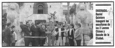 Nuestro buen amigo José Luis Fernández Ruiz nos proporciona los detalles significantes del acto de donación de los “Leones Chinos” a la ciudad de Ensenada: